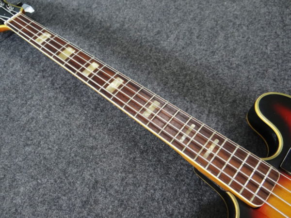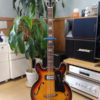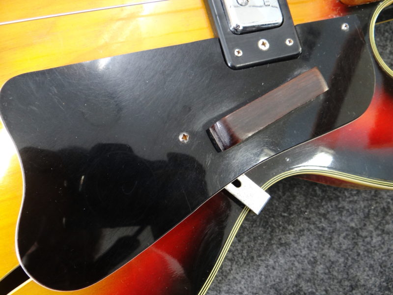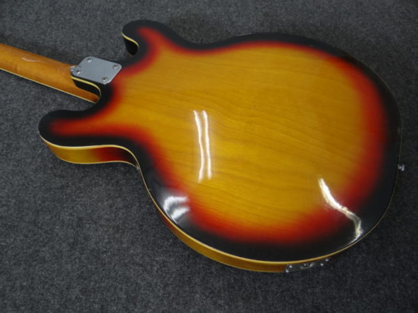 fホール付きホロウボディ、可変式ウッドブリッジ、指板にブロック・ポジション・マーカー、等々オリジナルのままですが、